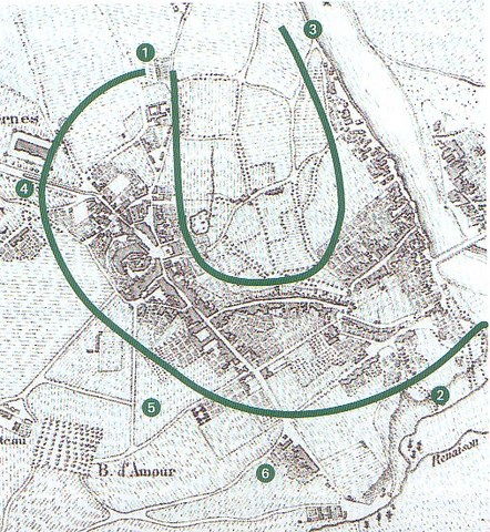 Le déplacement de la ville dans cette disposition ou le château ne représentait plus le centre ville était une conséquence des inondations survenues.