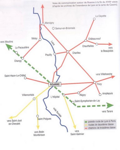 Il y eu un net essors du transport de marchandise par la Loire aussi bien en amont qu'en aval du fleuve. Les marchandises qui arrivaient par la route étaient acheminée par voie fluviale et de nombreux Roannais devinrent charpentiers puis mariniers. Ces professions représentaient un tiers de la population active. Ils transportaient entre autre le charbon en provenance de Saint Etienne.